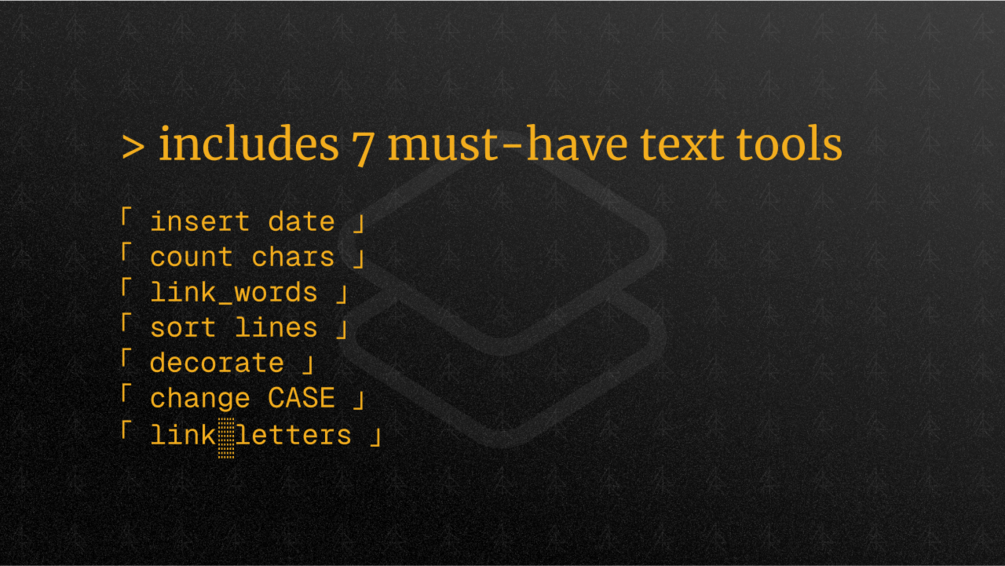 「 tools 」You'll get Apple Shortcuts 「 text editing 」 BUNDLE which will BOOST your productivity by saving time whenever you need to insert current date, count characters in your input, link words with or decorate text with special characters as well as change case of your text.